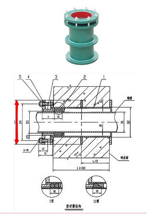柔性防水套管主要是一种用于管道穿墙处有严密防水的一种预埋管件,该产品的作用是防水,止漏,抗沉降。该产品主要用于混凝土墙体的浇筑和预埋。