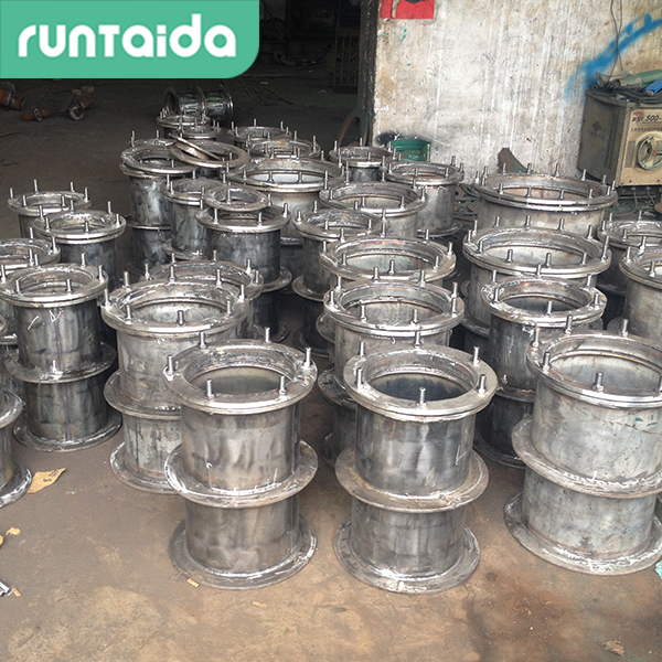 刚性防水套与止水翼环焊接在钢管外,柔性防水套与三个法兰环焊接在钢管外。一边有四个螺丝扣。内部焊接隔板,加十字环。在外面做法兰,加四个螺母。一根钢管焊接到头部。钢管安装后,拧紧法兰和螺钉。橡胶圈越紧,漏水量越大。一般用于防水要求较高的场地,如水池排水口、水泵过墙连接管等。